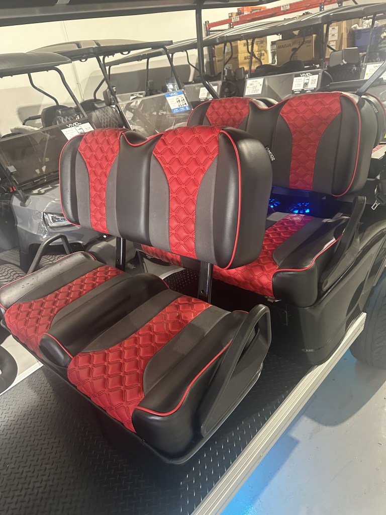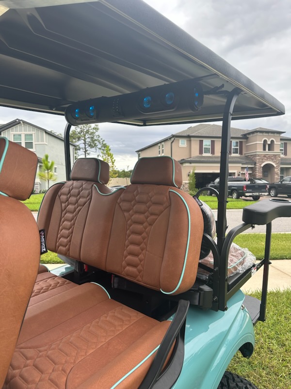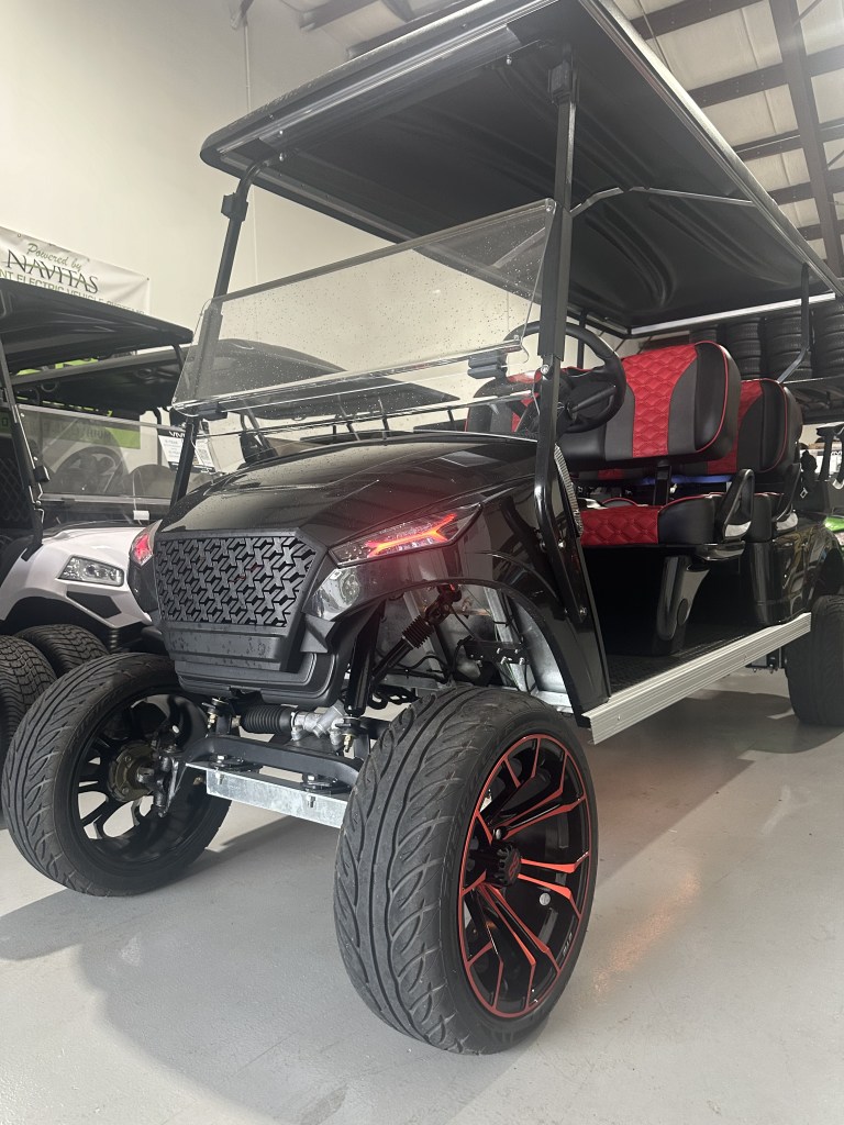 Navitas Storm are brand new custom build carts. The include an Eco Lithium Battery, Madjax Storm Body, Custom Modz Seats, Navitas Frame w/600-amp controller, Navitas 5KW motor. Many options are available for these 4- and 6-seater carts.