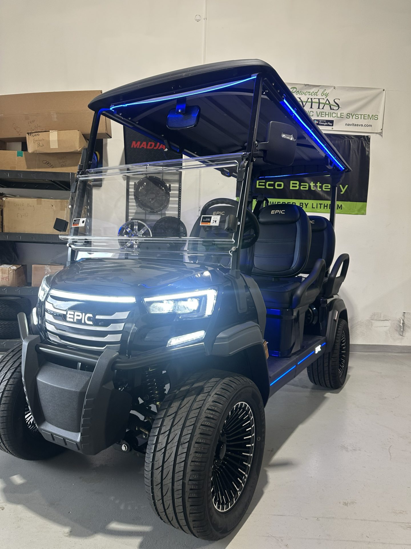 Introducing the future of golf carts: the 2026 Epic E40FX. Elevate your golfing experience and beyond with this cutting-edge, eco-friendly vehicle designed to impress on and off the course. The Epic E40FX is a masterpiece of modern engineering, boasting a state-of-the-art Lithium-Ion power system that ensures efficient, long-lasting performance. Say goodbye to traditional maintenance woes and hello to more time enjoying the ride. With the latest advancements in battery technology, this golf cart delivers exceptional range and quick charging, keeping you on the move with minimal downtime. Designed to accommodate up to four passengers, the spacious seating layout of the E40FX ensures everyone rides in comfort and style. Whether you’re navigating the greens or cruising around your community, this vehicle offers a smooth, quiet ride that turns every journey into a first-class experience. Crafted with a keen eye for aesthetics and functionality, the 2026 Epic E40FX features a sleek, modern design that stands out from the crowd. Its innovative construction and contemporary styling are matched by practical features that make it the perfect companion for both leisurely outings and practical errands. Being brand new, the Epic E40FX comes in pristine condition, ready to deliver unrivaled performance and reliability from the moment you take the wheel. It’s more than just a vehicle; it’s an invitation to redefine the way you explore your world. Step into the future of personal transportation with the Epic E40FX. Embrace a new level of luxury, convenience, and sustainability, and let the adventures begin.