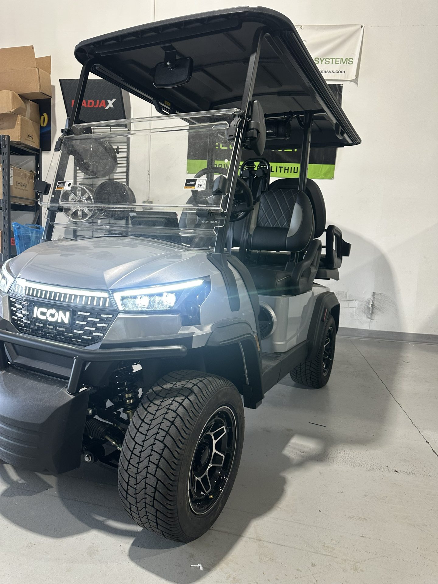 Step into the future of golf cart luxury with the all-new 2026 ICON I40x, a masterpiece of innovation and style. This top-of-the-line model is perfect for those who demand the best in both performance and comfort. Designed with a sleek and modern aesthetic, the ICON I40x is sure to turn heads wherever you go, whether it’s on the golf course or cruising around your community. Powered by a cutting-edge Lithium-Ion battery, this golf cart offers unparalleled efficiency and power, ensuring you have the energy to take on your day without a hitch. Say goodbye to frequent charging and hello to more adventure as the Lithium-Ion technology provides longer-lasting performance and quicker charge times. The ICON I40x comfortably seats up to four passengers, making it the ideal choice for family outings or a day out with friends. With its spacious seating arrangement, everyone can enjoy the ride in comfort and style. The plush, ergonomic seats provide exceptional support and relaxation, ensuring every journey is a pleasure. Being brand new, the 2026 ICON I40x is in pristine condition, ready for its first adventure. It comes equipped with the latest features and conveniences to enhance your driving experience. From the smooth ride delivered by its advanced suspension system to the intuitive controls that make navigating a breeze, every aspect of this golf cart is designed with the driver in mind. Experience the perfect blend of innovation and elegance with the 2026 ICON I40x. It’s not just a golf cart; it’s a statement of sophistication and forward-thinking design. Discover the difference today and elevate your ride to the next level with this exceptional vehicle.