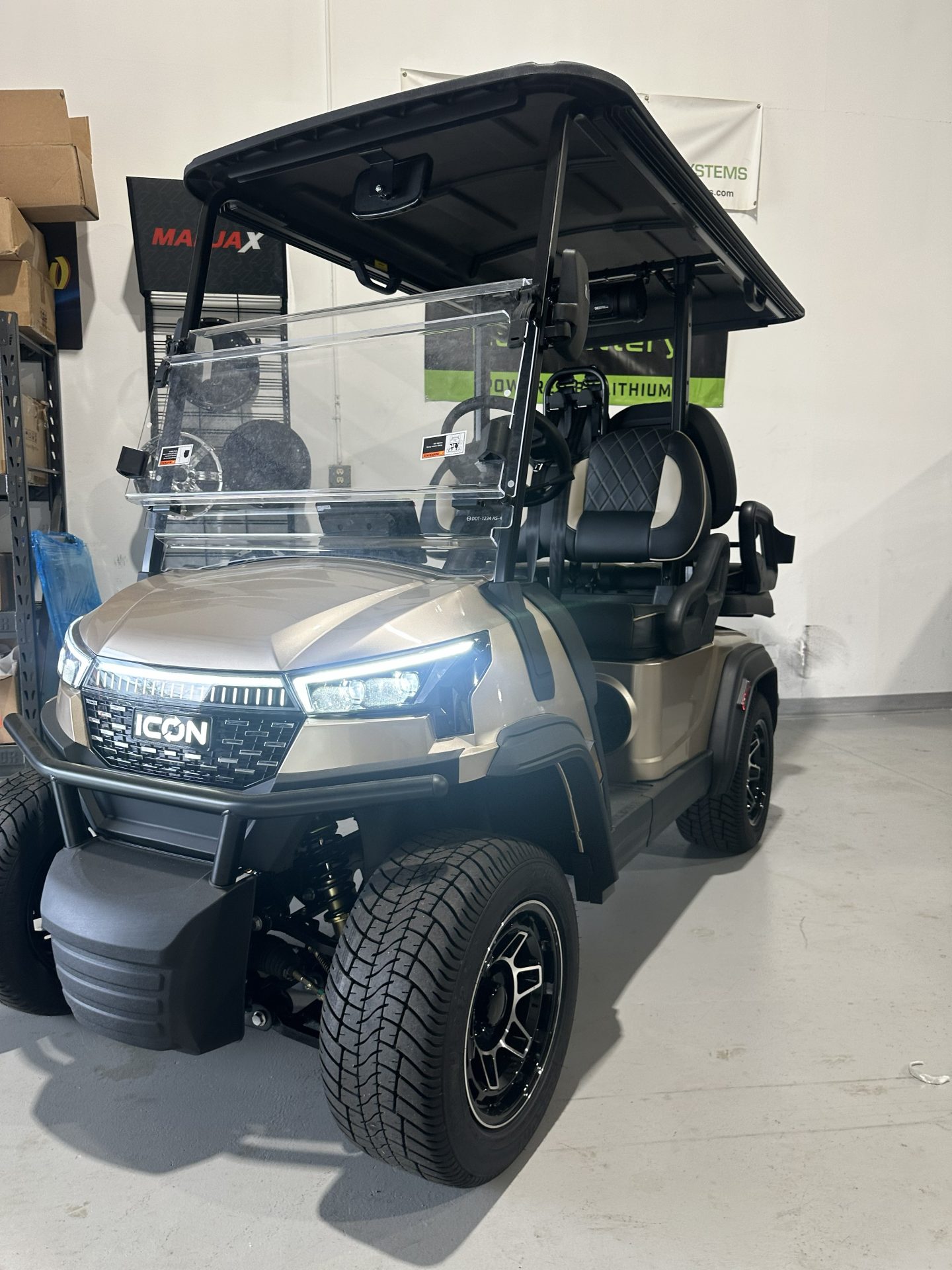 Introducing the 2026 ICON I40x Golf Cart, a fusion of style, innovation, and eco-friendly performance designed to make your golfing experience exceptional. This brand-new marvel isn’t just a mode of transportation; it’s a statement on the greens. Sporting a sleek, modern design, the I40x is sure to turn heads as you glide quietly and efficiently across the course. Under the hood, the I40x is powered by a cutting-edge Lithium-Ion battery system, ensuring you get a longer range and faster charging times compared to traditional batteries. Say goodbye to range anxiety and hello to endless fairway adventures. With its eco-friendly powertrain, you can enjoy the serenity of nature without the noise and emissions of gas-powered counterparts. The spacious interior comfortably accommodates up to four passengers, making it perfect for a leisurely ride with friends or family. Whether you’re heading for a quick nine or embarking on a full round, the I40x offers ample room for your gear and golfing companions. The ergonomically designed seating ensures a comfortable ride, while the intuitive controls make operating the cart a breeze. Every detail of the ICON I40x is crafted to enhance your experience. From its durable build and premium materials to the state-of-the-art dashboard, this golf cart is equipped with everything you need for a luxurious and convenient ride. Plus, with its new condition, you can be confident in the reliability and longevity of your investment. Elevate your golf game with the 2026 ICON I40x Golf Cart — where modern technology meets classic golfing tradition. Ready to tee off in style? This is more than just a golf cart; it’s your new favorite way to enjoy the course.