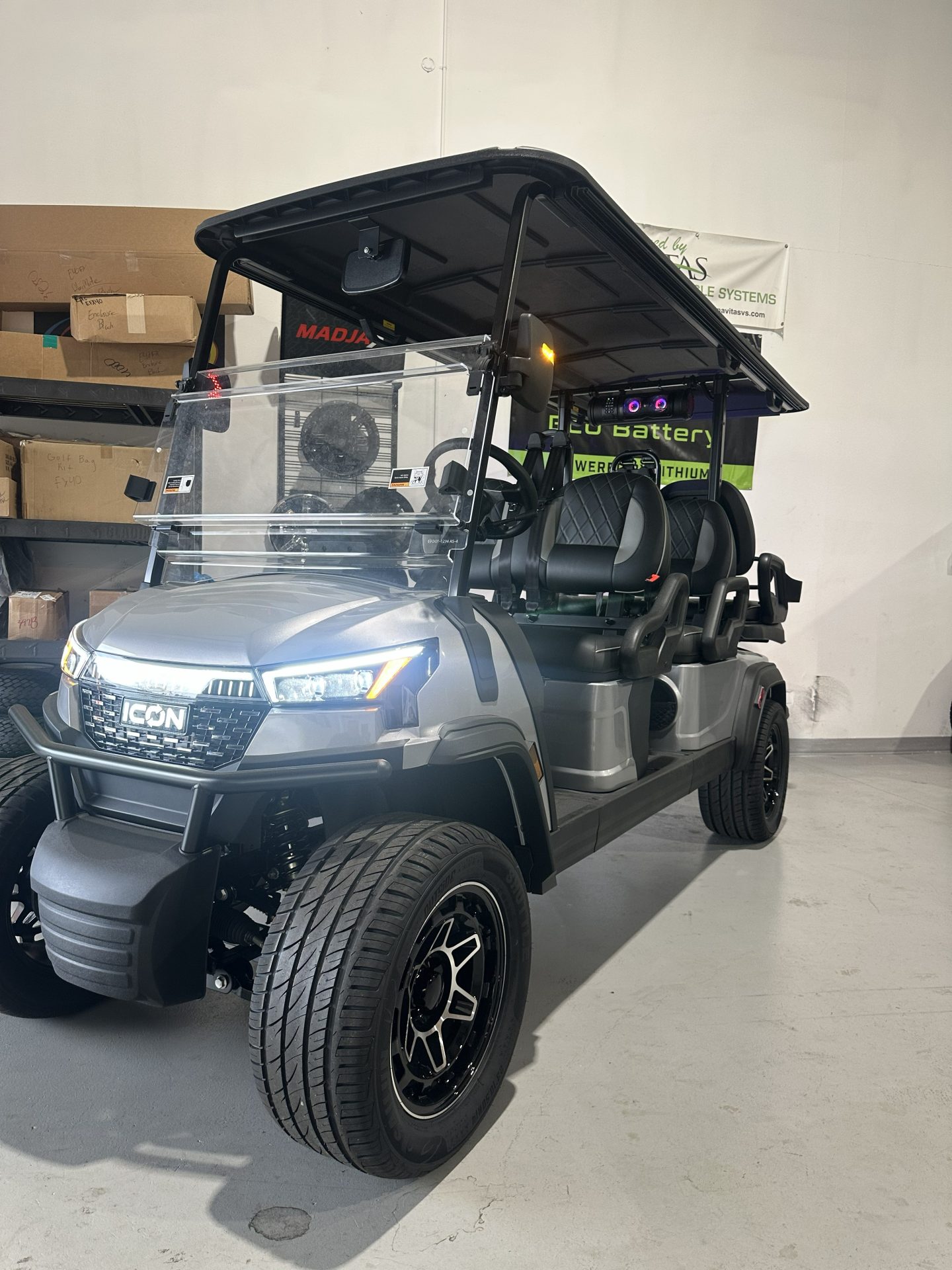 Introducing the future of golf cart luxury and efficiency: the brand-new 2026 ICON I60x. This cutting-edge vehicle is designed for those who demand more from their golf cart experience. Powered by a state-of-the-art Lithium-Ion battery, the I60x offers remarkable energy efficiency and a smooth, silent ride that will keep you cruising effortlessly around the course or neighborhood. With a spacious seating capacity for six passengers, this golf cart ensures that no one gets left behind. Whether you’re heading to the clubhouse with friends or taking the family for a leisurely drive, the I60x promises comfort and style for everyone onboard. The 2026 ICON I60x combines modern design with practical features. As a new model, it boasts sleek lines and a contemporary aesthetic that turns heads wherever you go. The durable construction and high-quality materials ensure longevity and resilience, even with regular use. Safety and convenience are top priorities with the I60x. Equipped with advanced features, this cart includes intuitive controls and a user-friendly interface that make driving a breeze. The enhanced suspension system provides a smooth ride, while the robust braking system ensures reliable stopping power. Whether you’re a golf enthusiast or simply looking for a stylish way to get around, the 2026 ICON I60x is your perfect companion. Experience the pinnacle of modern golf cart design and performance. This new model is ready to deliver an unparalleled driving experience that’s both fun and functional. Don’t miss the opportunity to be among the first to own this remarkable vehicle. Your next adventure awaits with the ICON I60x!