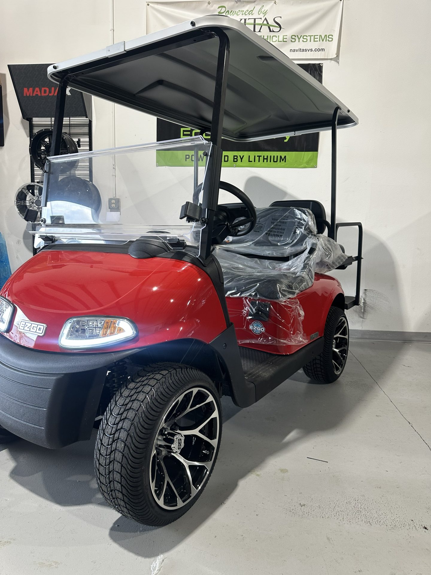 Experience the ultimate in leisure and style with this 2020 E-Z-GO RXV Elite Certified Pre-Owned Golf Cart. This sleek and modern vehicle redefines what it means to ride in comfort and efficiency. Powered by an advanced Lithium-Ion battery, this golf cart offers superior performance and extended range, ensuring you can cruise the course or the neighborhood with ease. This RXV Elite model has been meticulously refurbished to meet the highest standards, ensuring it looks and feels as good as new. With its certified pre-owned status, you can be confident in its quality and reliability, as it has undergone a rigorous inspection process. Designed for convenience and enjoyment, this cart offers seating for four passengers, making it perfect for family outings or social gatherings. The spacious design ensures ample legroom and comfort for everyone on board. Whether you’re hitting the greens or just enjoying a leisurely drive, the E-Z-GO RXV Elite delivers an unparalleled ride. The 2020 model boasts a refined aesthetic with clean lines and a modern finish, making it a stylish choice for any setting. Its lightweight Lithium-Ion power source not only reduces the cart’s environmental footprint but also provides quick acceleration and a smooth ride over any terrain. Don’t miss the opportunity to own this exceptional golf cart that combines innovative technology with timeless appeal. It’s more than just a ride; it’s an experience waiting to be had. Jump in, and discover the effortless blend of luxury and performance with the E-Z-GO RXV Elite.